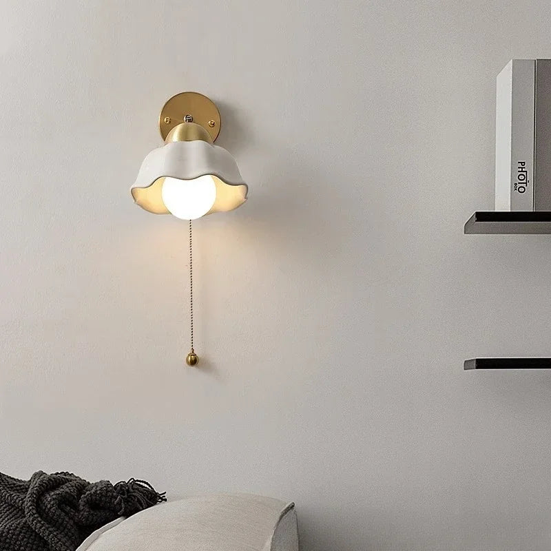 Met haar bloemvormige keramiek, gouden details en zachte gloed brengt de Keramische Bloemvormige Wandlamp een tijdloze elegantie in elke ruimte – een subtiel statement van charme en klasse.